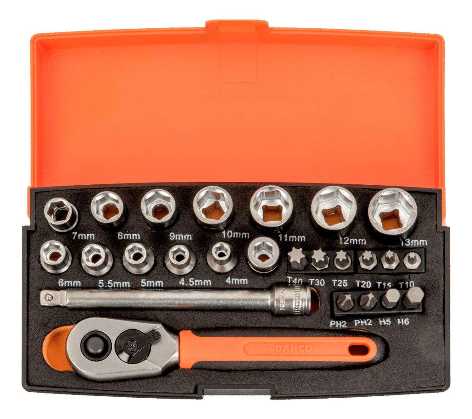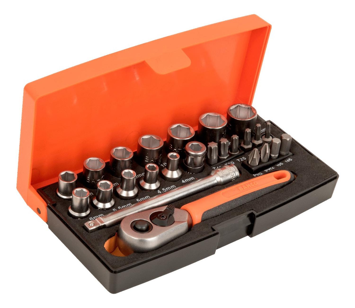 JUEGO DE 25 HERRAMIENTAS DADOS Y PUNTAS 1/4 SBSL25 BAHCO- 12 vasos hexagonales de 1/4": 4, 4,5, 5, 5,5, 6,... Leer más...