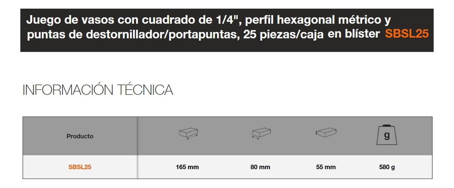 Juego De 25 Herramientas Dados Y Puntas 1/4 Sbsl25 Bahco